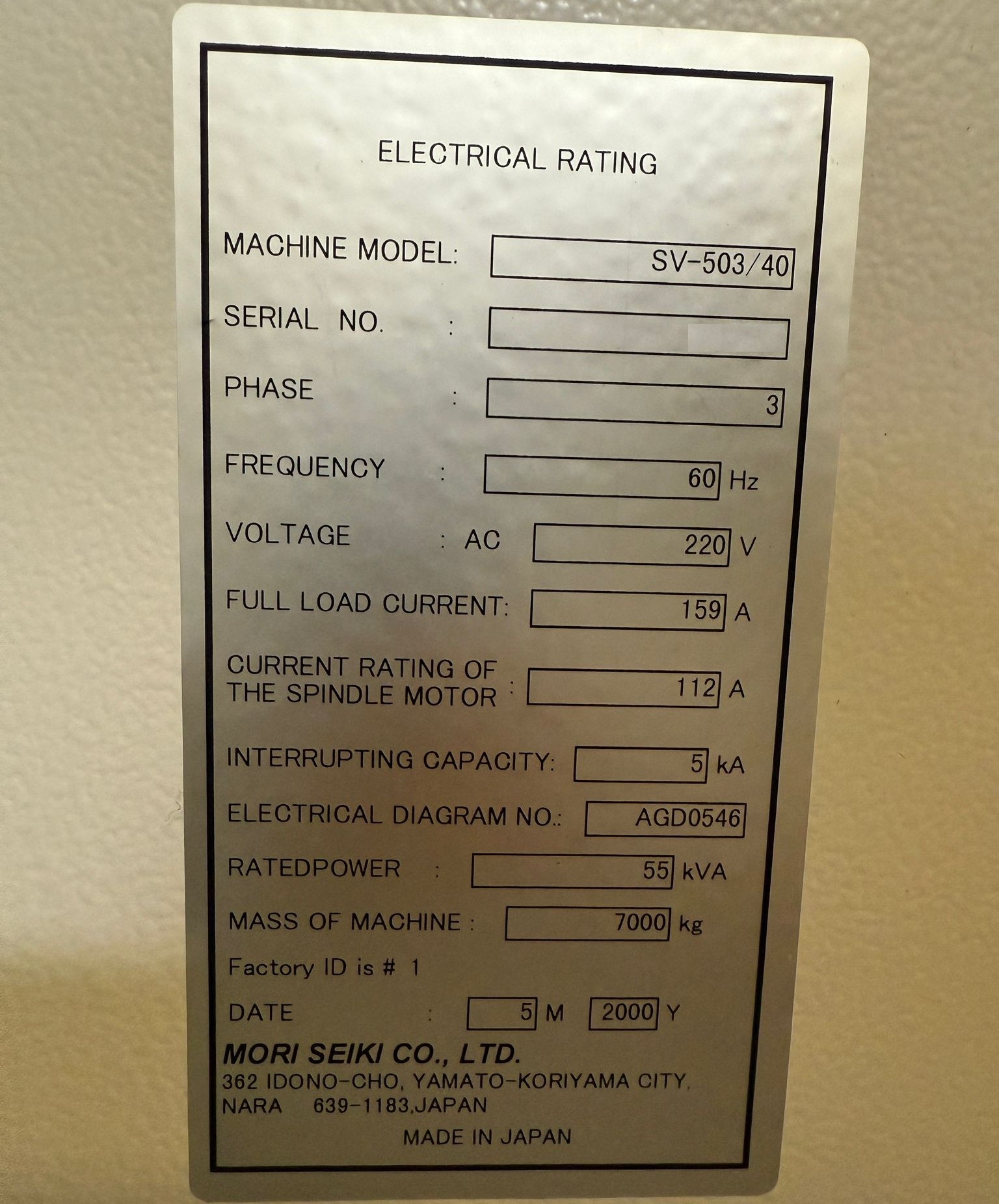 Marca/modelo: Mori Seiki SV-503/40