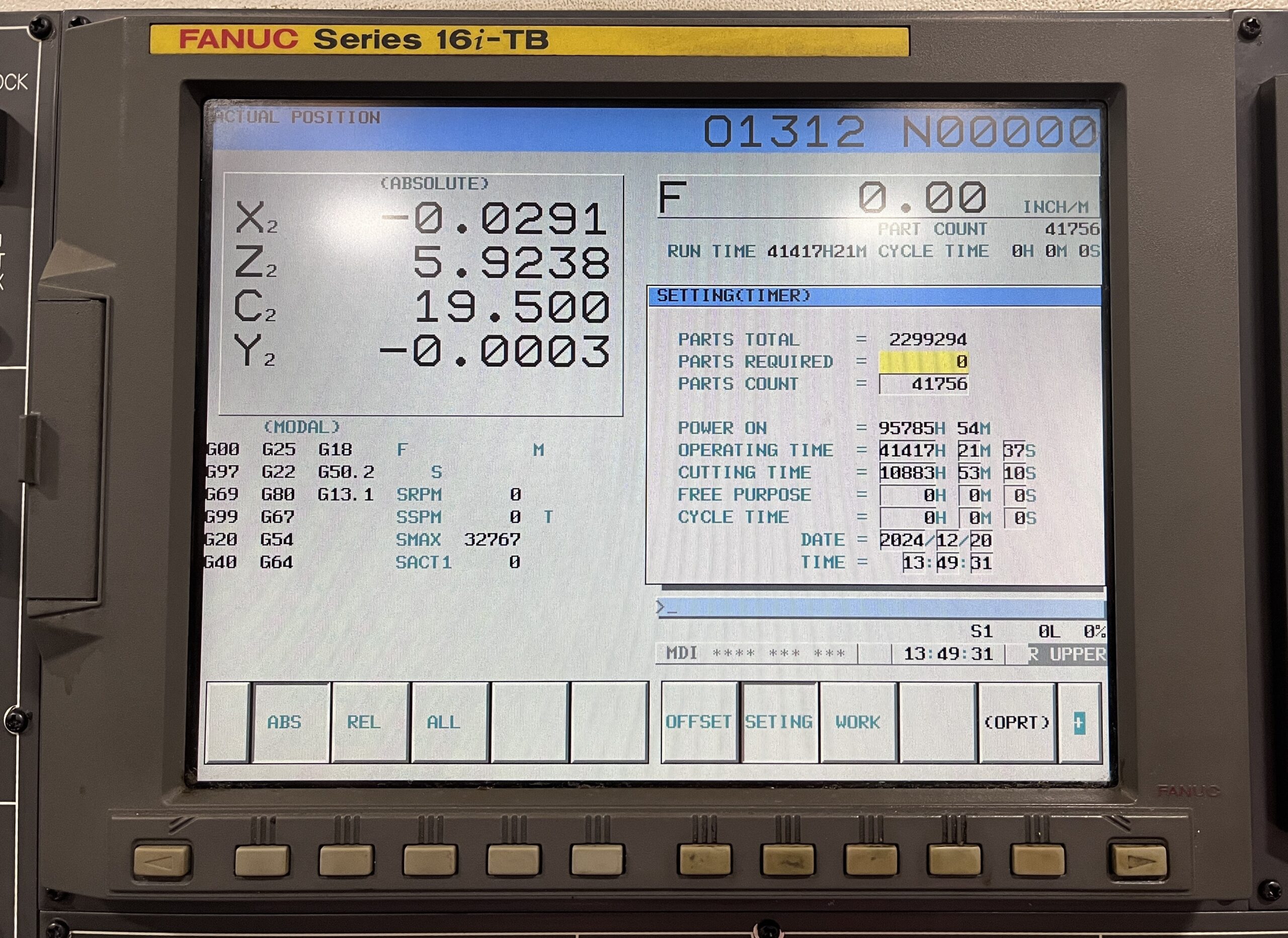 | Velocidad de la herramienta en vivo: 6000 RPM |